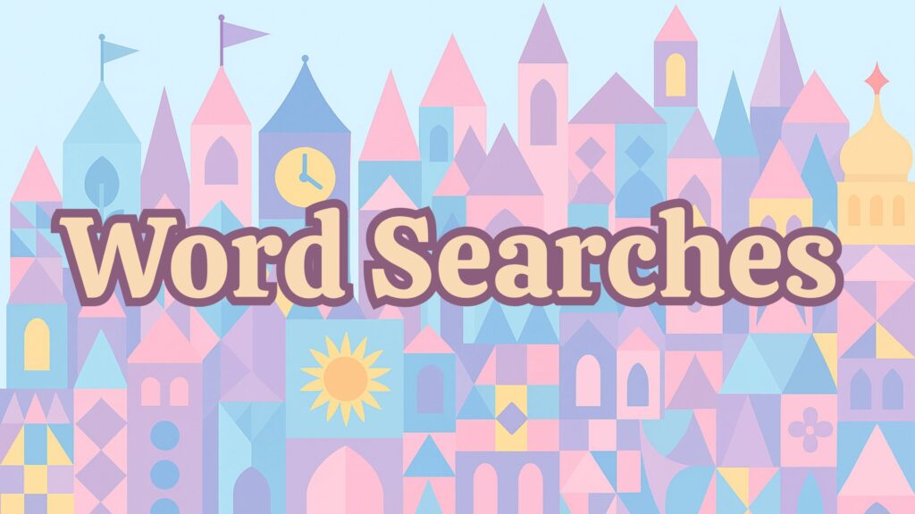 Enjoy challenging Disney-inspired word searches with different themes such as animated films, theme parks, live action movies, and more.